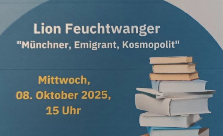 Wir begrüßen Frau Anne Kaspar zum Vortrag und Gespräch über den Autor Lion Feuchtwanger, einem Münchner, Emigrant und Kosmopolit.